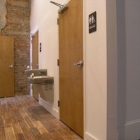 The top level (suite B) offers 3,120 sq ft total. Updated electrical, exposed brick walls, two handicap code-compliant bathrooms, recessed tray ceiling in the middle, huge crown moldings, historic chandelier and more! Gleaming hardwood teak-floors and entry foyer that will welcome your most discriminating guests, matched with 13 foot high ceilings in the main suite!